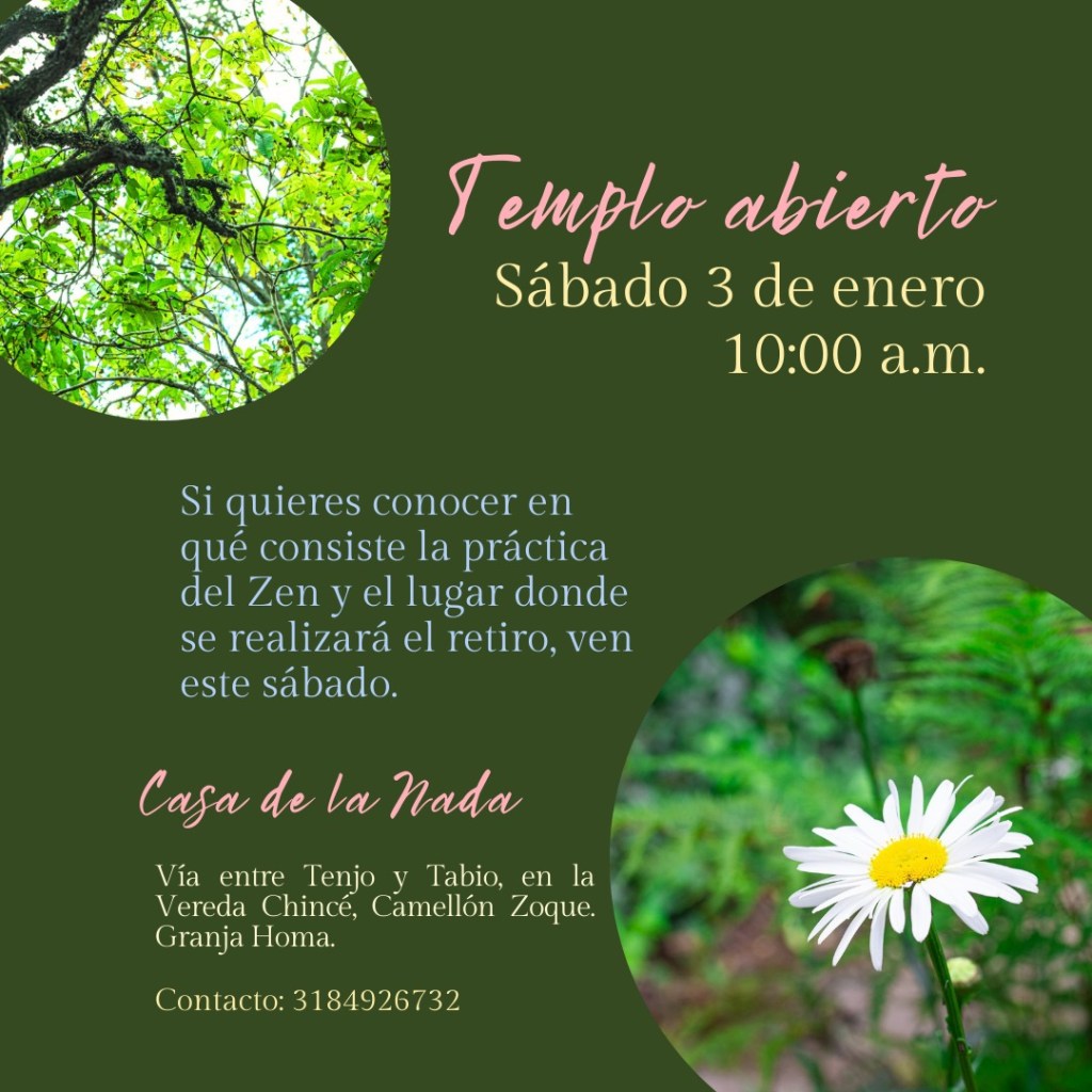 Retiro de enero (Sesshín de año nuevo) del 9 al 12 de enero en Tenjo, Cundinamarca.